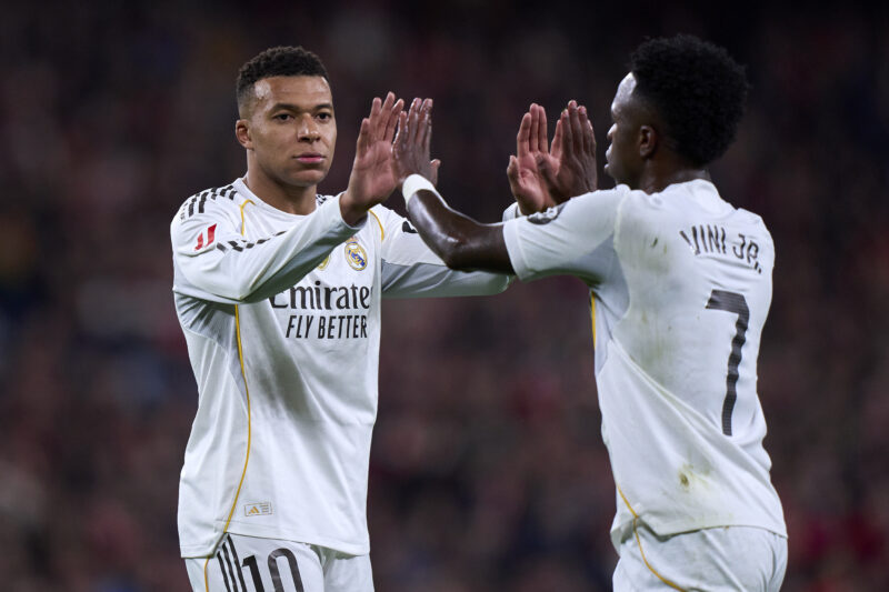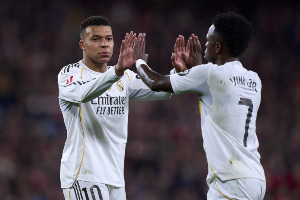 守備タスクを軽減するためか、ここ最近はムバッペとヴィニシウスの2トップが基本システムとなっているレアル photo/Getty Images